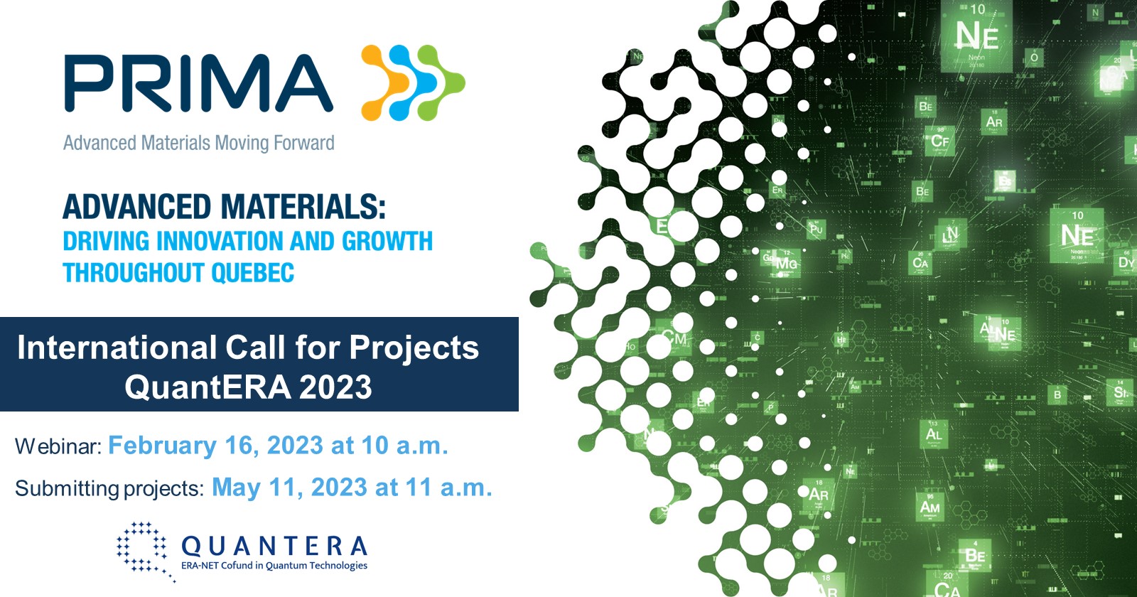 To this end, the Ministry of Economy, Innovation and Energy (MEIE) supports PRIMA Québec and Prompt in their participation in the QuantERA 2023 call. As part of this call, 29 European and non-European countries participate with a preliminary total budget of approximately €33 million.